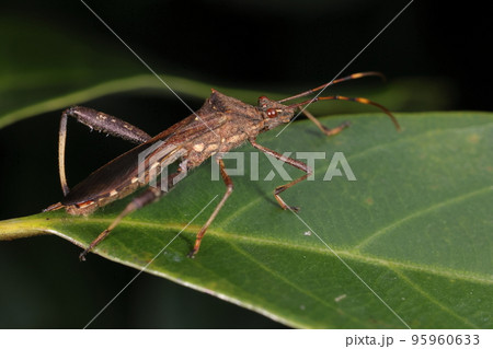 生き物 昆虫 ホソヘリカメムシ、農業害虫とされています。被害はマメ科にイネ科、柑橘類など果樹まで