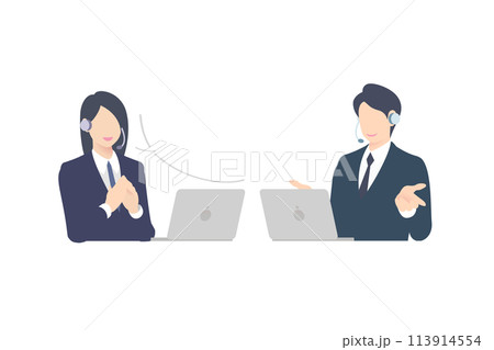 オンラインで接客対応しているビジネスマンのベクターイラスト素材。