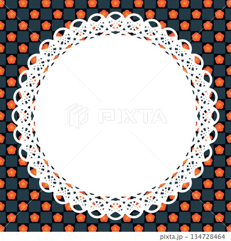 丸型レース×梅(紺青)