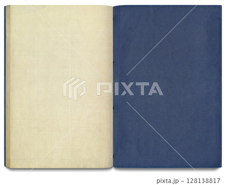 古い時代の和綴じ青本、四つ目綴じの見開き冊子