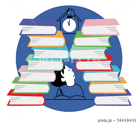 テスト前日|試験勉強に追われて頭を抱える、女性のイラスト