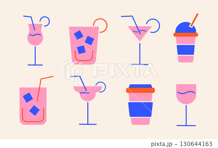 set of colorful drinks, cocktail and beverages icons, abstract elements made geometric shapes