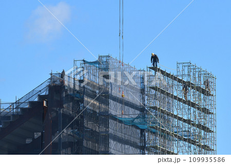 改装工事 外壁工事 工事現場 足場設置 イメージ素材