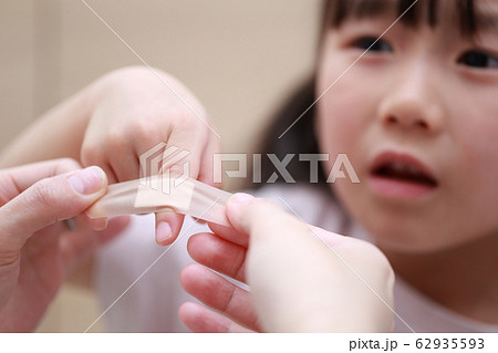 絆創膏 (カットバン バンドエイド 人物 子供 コピースペース 怪我 事故 痛い 辛い 女児 ケガ)