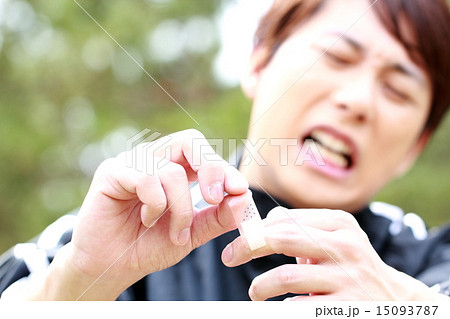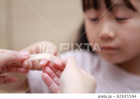 写真素材:ばんそうこうを貼る手 絆創膏 傷 処置