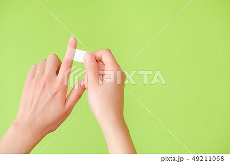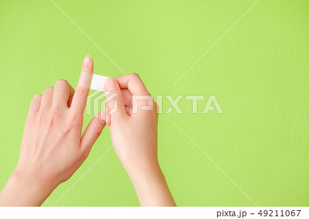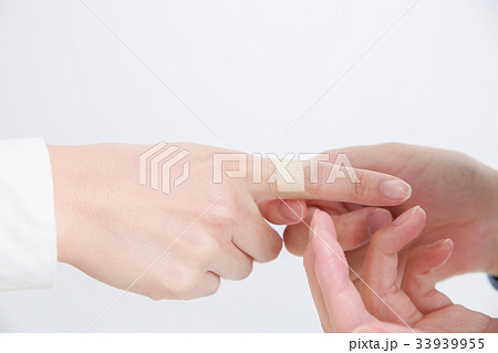 写真素材:ばんそうこうを貼る手 絆創膏 傷 処置