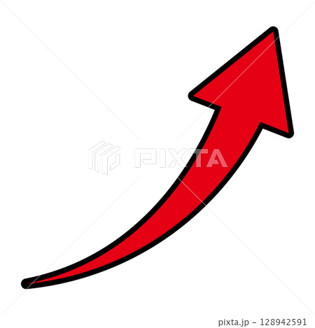 右肩上がりのシンプルな赤い矢印のイラスト 白背景