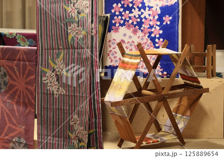 機にかかった手織布