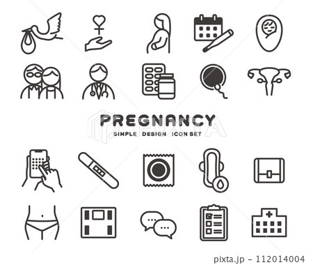 妊娠や不妊に関するアイコンのベクターイラスト素材