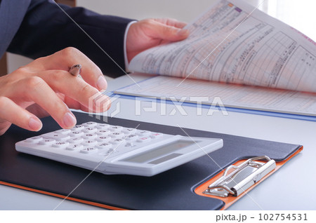At Accounting office. Businessman calculating bills, tax and audit budget of company. statistics and credit analytic for mortgage payment concept.
