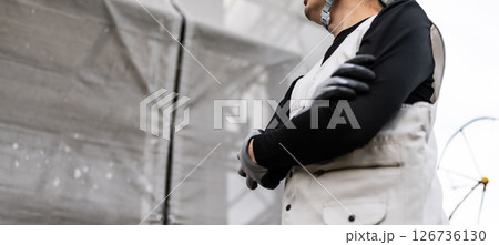 腕を組んで自信に満ちた表情を見せるスーツ姿の女性ビジネスパーソン