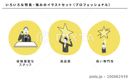 ビジネスのいろいろな特長・強みのイラストセット(プロフェッショナル)、ベクター