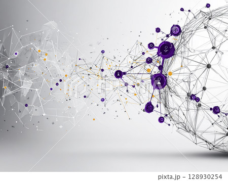 無数のパーティクルが紐でつながって浮遊している抽象的な背景CG素材