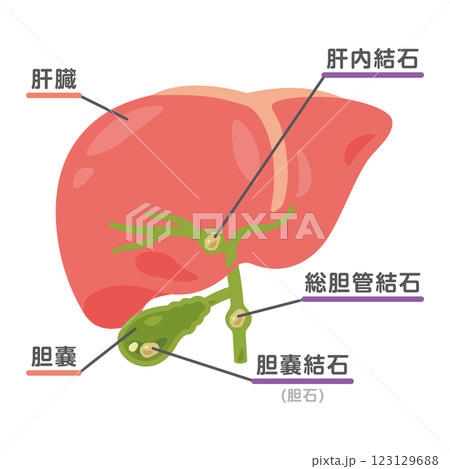 結石ができた胆嚢と肝臓のイラスト1