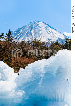 (山梨県)凍結してジュエリーアイス風な精進湖 富士山 夜明け