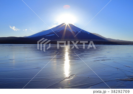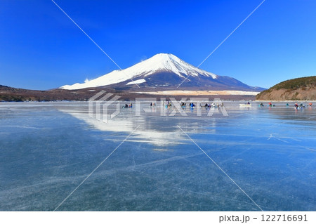 冬の氷結の山中湖
