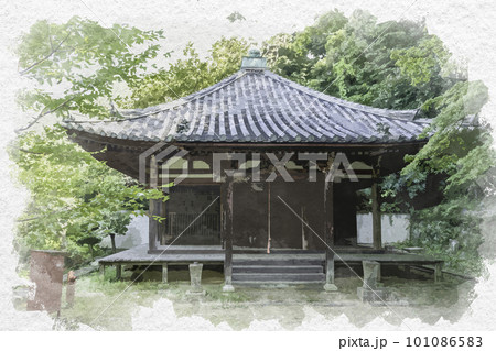 水彩画風 和歌山 紀三井寺 大師堂 和歌山県和歌山市