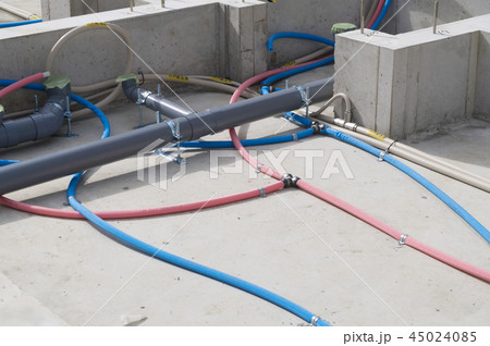住宅の基礎工事 床下の配管 下水 上水 給水 排水 給湯器のパイプ