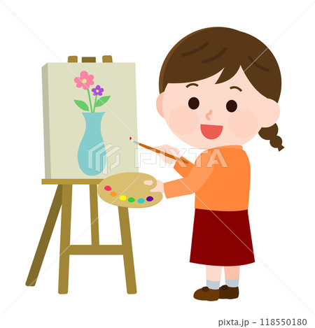 キャンバスに絵を描いている女の子 イラスト
