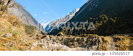 The Himalayan mountain landscape on the trekking route from Khotey to Thuli Kharka on Mera Peak trek in Nepal.