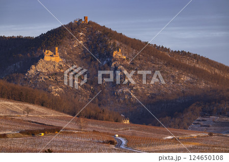 Catle ruins Chateau de Saint-Ulrich, Chateau du Girsberg and Chateau du Haut-Ribeaupierre near Ribeauville, Alsace, France