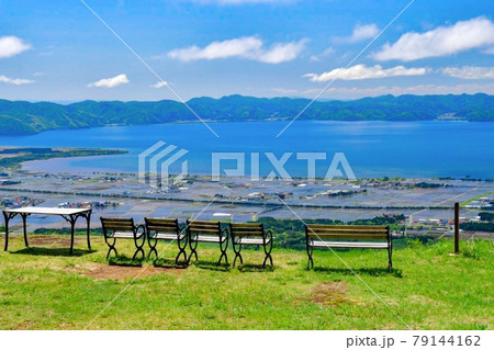 福島県猪苗代の猪苗代リゾートスキー場からの夏の猪苗代湖の景色