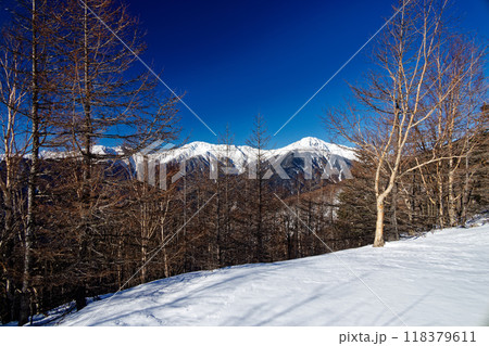 八ヶ岳連峰・硫黄岳稜線から見る厳冬の北アルプス・後立山連峰と剱・立山連峰