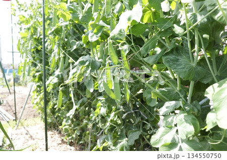 畑に実るサヤエンドウの写真