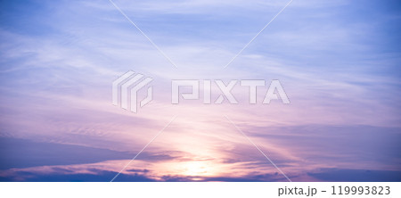 Sunset or dawn backlit by warm sun. Panorama style background. Sunset or dawn sky. Timelapse.
