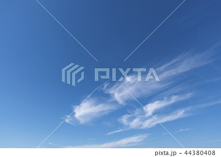 秋の空に広がる刷毛で掃いたような美しい筋雲・ほうき雲・巻雲と澄み渡る青空のテクスチャ背景素材