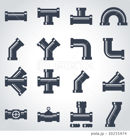 Vector black pipe fittings icon set