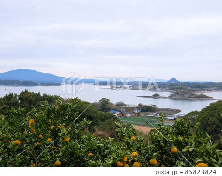 冬の維和島 山から見える景色とみかん園 (熊本県)