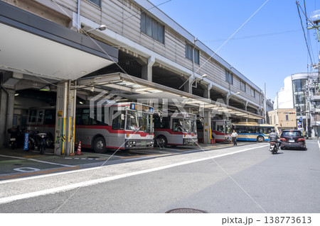 日本の横浜都市景観 東急電鉄 綱島駅などを望む。…自転車・バイクをおりてお通りください=2日