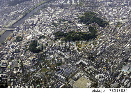 日本の横浜都市景観 6月。東急新横浜線 新綱島駅南口(画面左)や鶴見川などを望む=8日