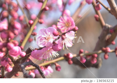ピンク梅と白梅満開