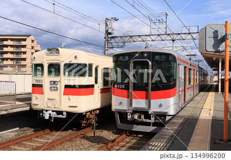 山陽電気鉄道 西飾磨駅で交換する3000系と6000系
