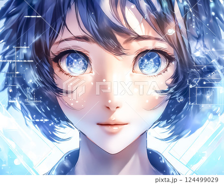 ホログラフィックディスプレイと瞳のアップのイメージ素材 フォトリアル