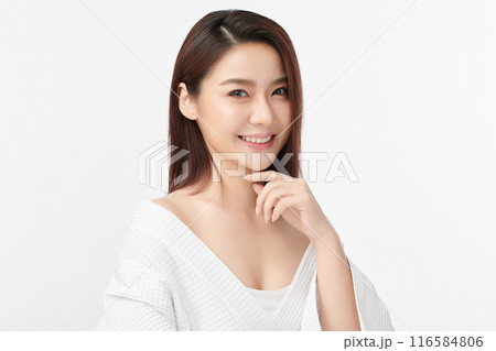 Beautiful young asian woman with clean fresh skin on white background, Face care, Facial treatment, Cosmetology, beauty and spa, Asian women portrait.