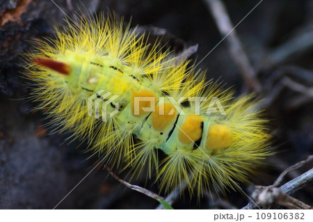カラフルな リンゴドクガの幼虫
