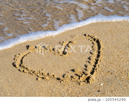 波打ち際に描かれたハート。