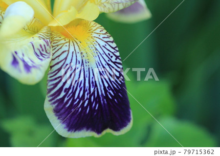 自然 植物 アヤメ、初夏に咲く花。六弁花で外側三弁が大きい。花弁の根元に網目模様があります