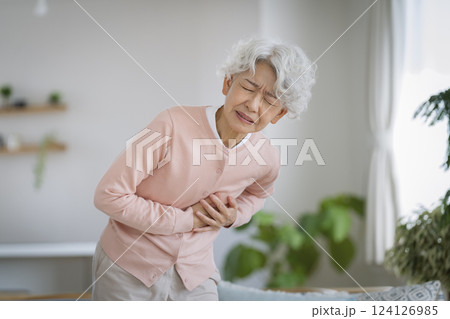 胸をおさえて苦しむシニア女性