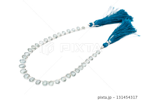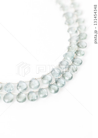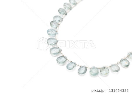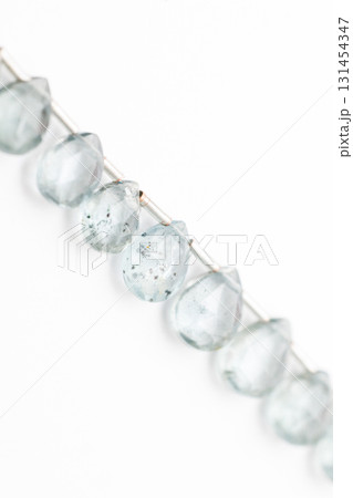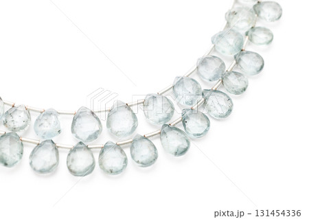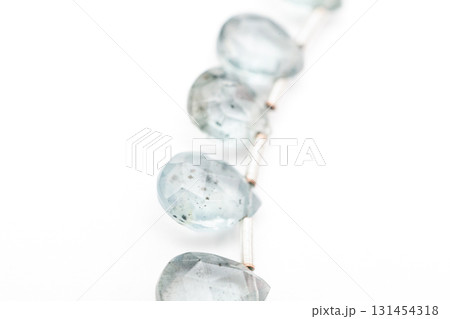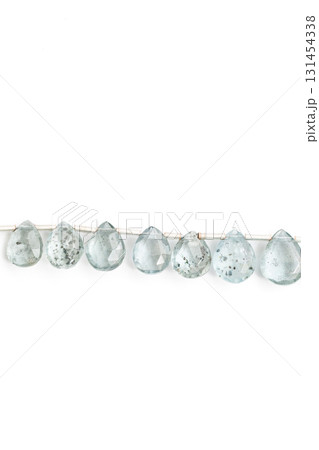 白背景に並べられたモスアクアマリンのファセットドロップカット