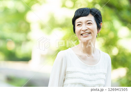 女性ポートレート 40代 屋外 カメラ目線