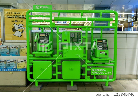 静岡市、静岡駅に設置された公衆電話のプラモニュメント