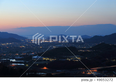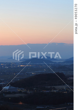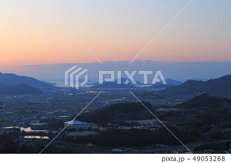 くれなずむ瀬戸内の海、島、山