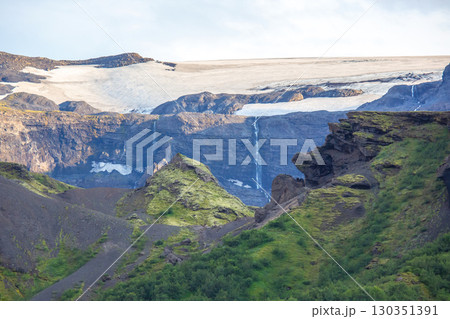 Majestic waterfalls cascading from glaciers in Iceland's rugged landscape