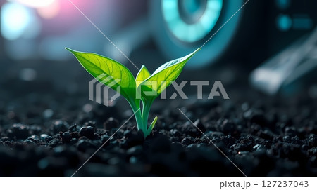Plant sprouting in the Sand. Seedling sand. A fresh sprout