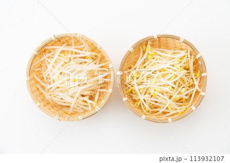 白バックの大豆もやし(豆もやし)と緑豆もやし