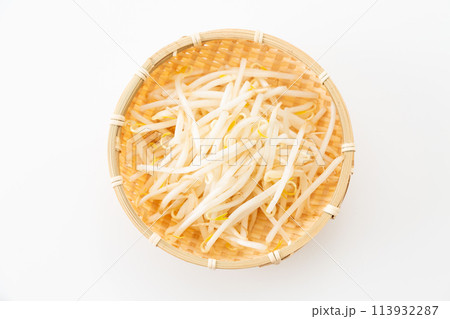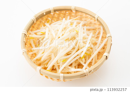 竹ザルに盛られたもやし 野菜 物価の優等生